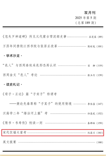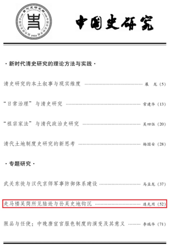 近日,历史文化学院连先用、纪昌兰博士在《中国史研究》2025年第5期分别发表题为《走马楼吴简所见陆逊与孙吴史地钩沉》、《宋代饮福大宴考》的学术论文。